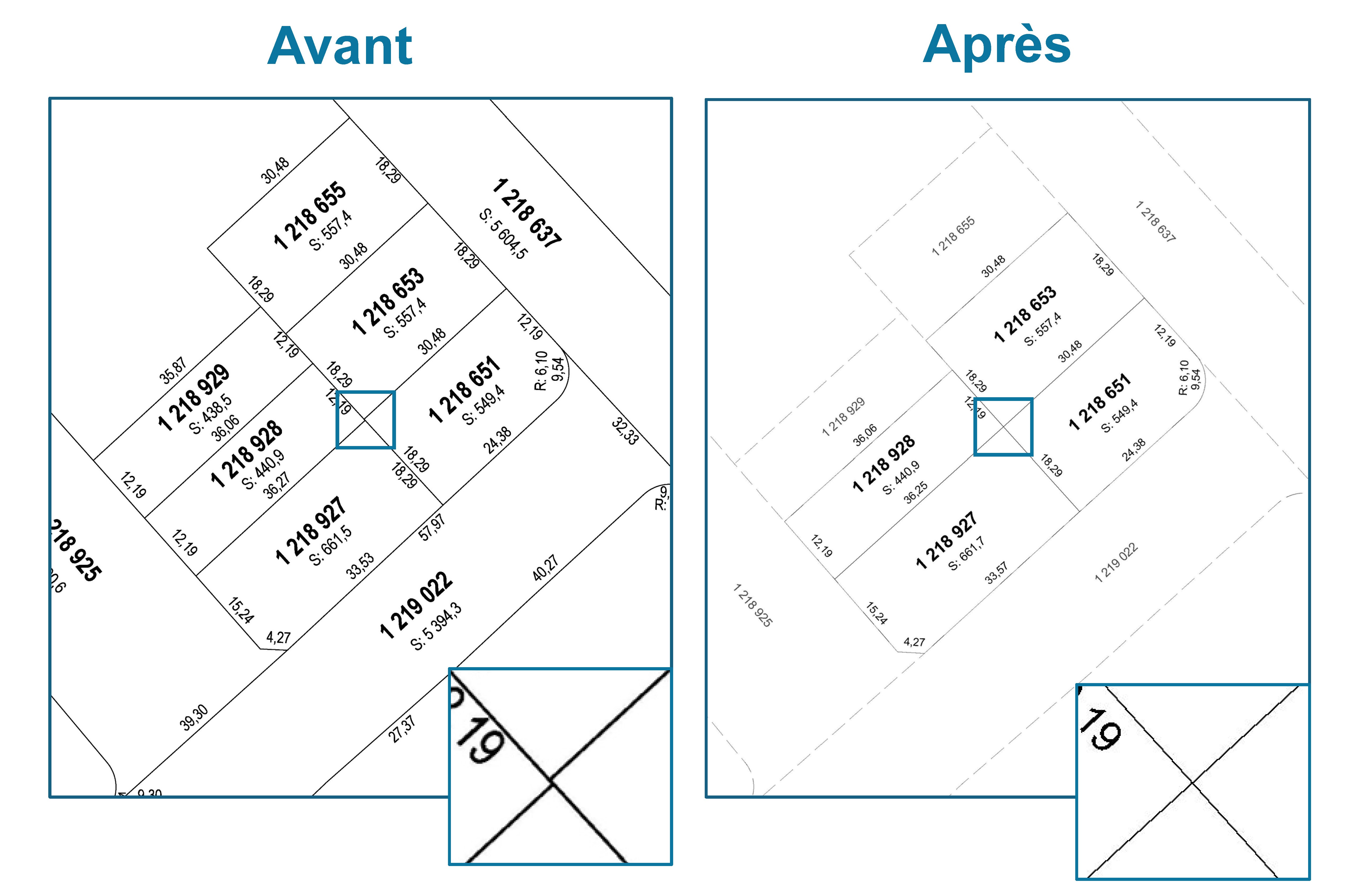 - La qualité métrique des lignes de lots du polygone de lot ou de base ne doit pas être détériorée.