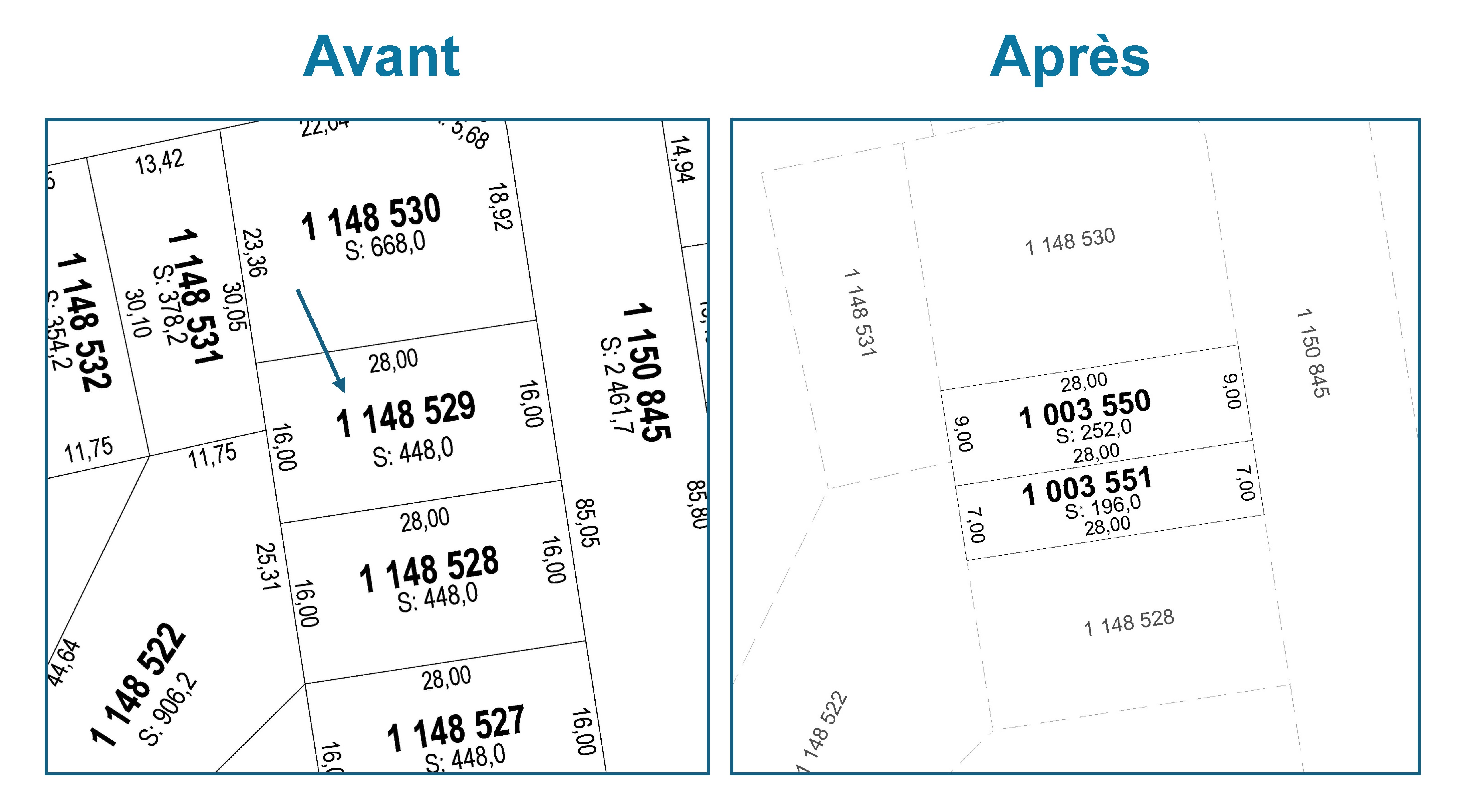 - Si un seul lot est remplacé, une note de non-conformité pourrait être utilisée pour expliquer la différence entre les données du dossier et les données de l’extraction (données géométriques et/ou descriptives).