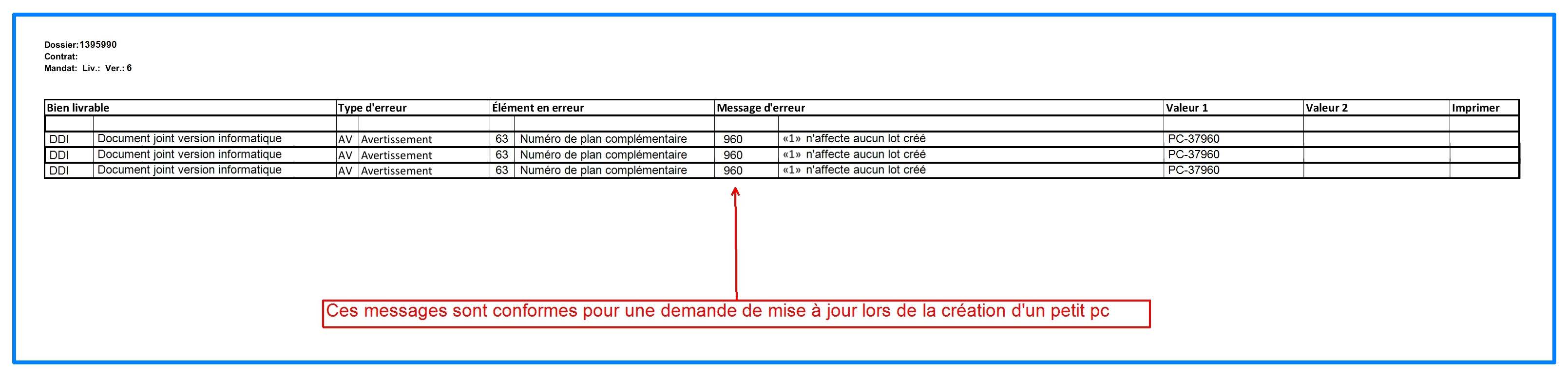 Messages d'avertissement sur le document joint